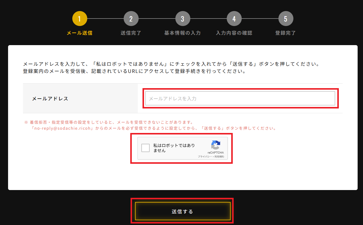 登録に必要な入力項目を記入し、「個人情報保護指針」「サービス利用規約」に同意するのチェックボックスにそれぞれチェックを入れて下さい。